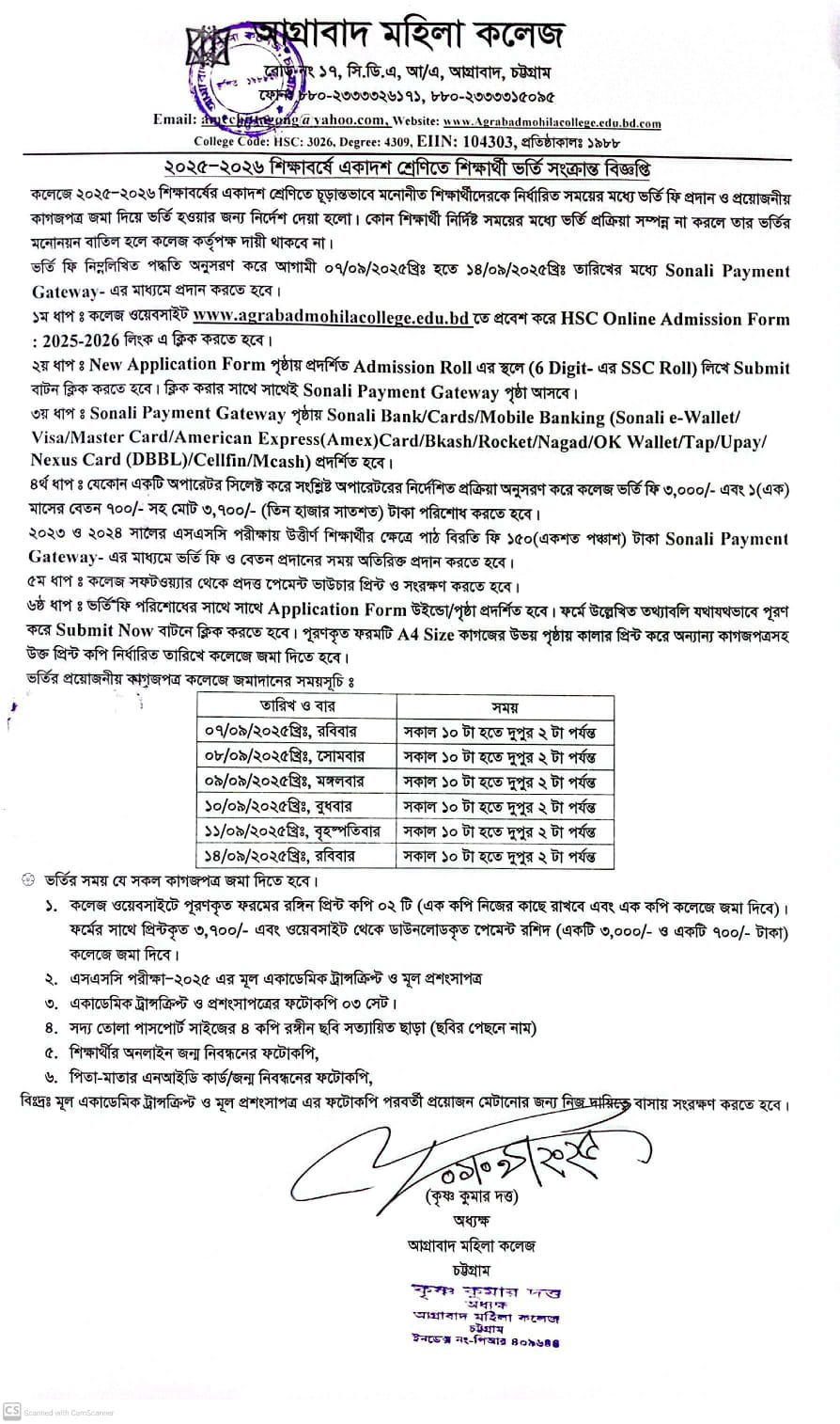 09/25/2025 ২০২৫-২০২৬ শিক্ষাবর্ষে একাদশ শ্রেণীতে শিক্ষার্থী ভর্তি সংক্রান্ত বিজ্ঞপ্তি (চতুর্থ পর্যায়)