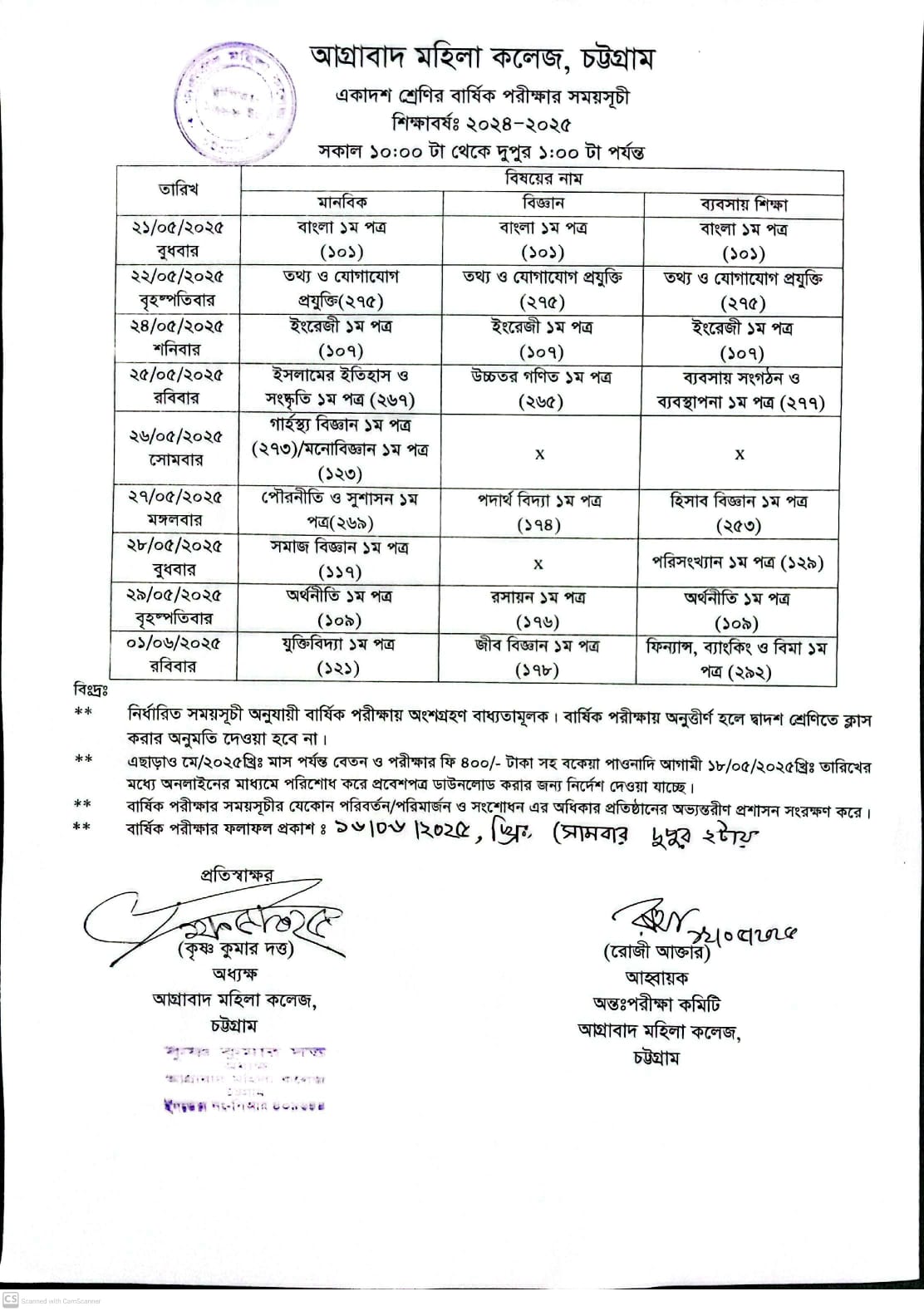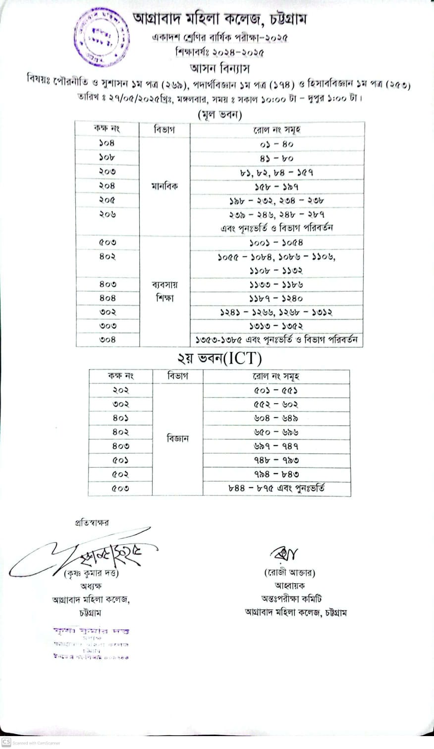05/20/2025 ২০২৪-২০২৫ শিক্ষাবর্ষের একাদশ শ্রেণির বার্ষিক পরিক্ষার আসন বিন্যাস