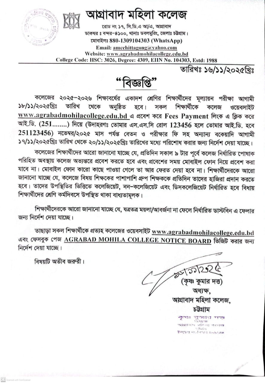 College Code : 3026 Road No: 17, CDA, R/A, Agrabad., Double Mooring, Chattogram; 01309-104303